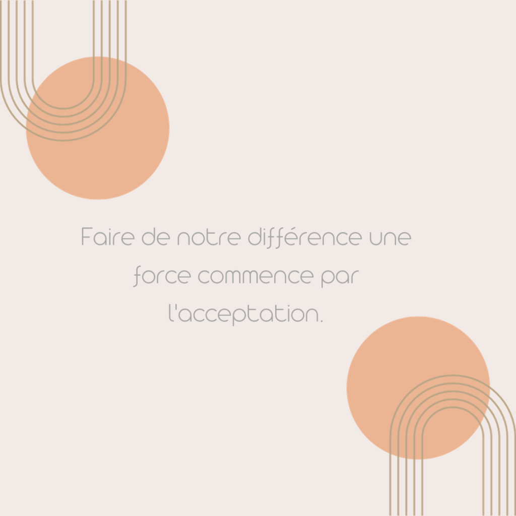 Faire de notre différence une force commence par l’acceptation. C’est reconnaître et célébrer ce qui nous distingue, plutôt que de chercher à nous conformer à des normes extérieures.
