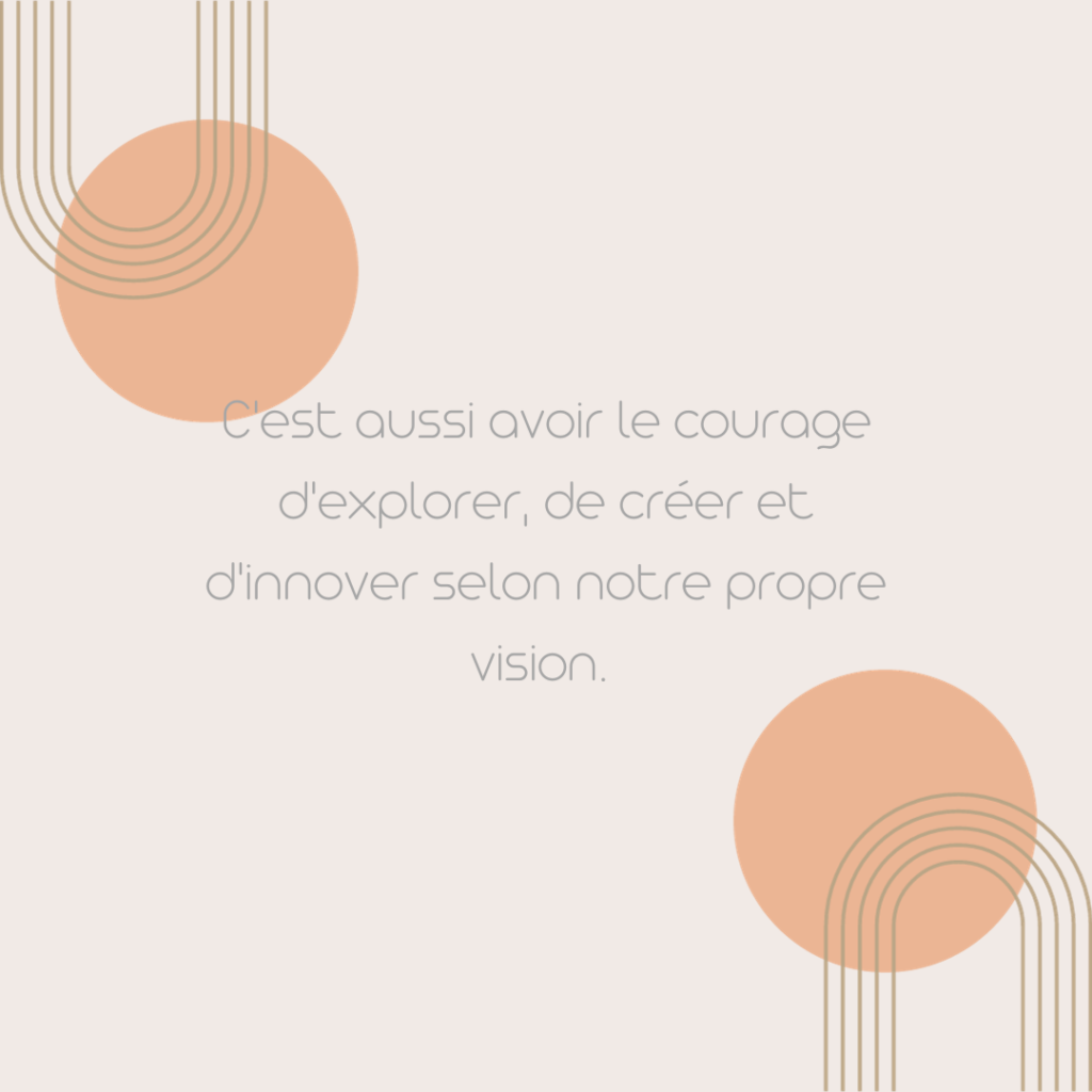 C’est aussi avoir le courage d’explorer, de créer et d’innover selon notre propre vision. C’est oser prendre des chemins moins fréquentés, car c’est souvent là que se trouvent les plus belles découvertes.